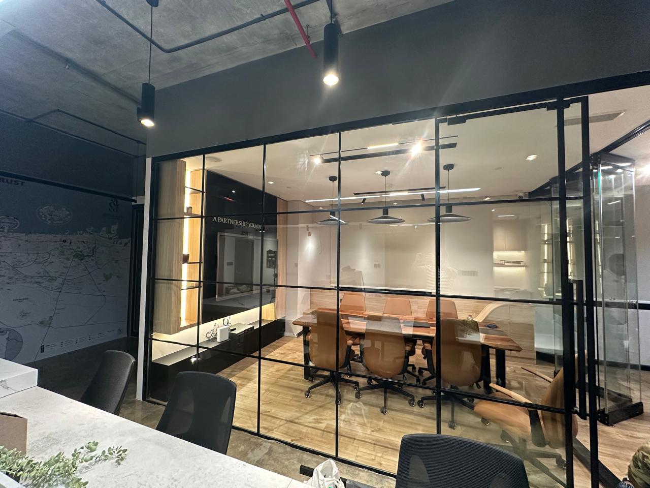 Enhance workspaces with glass partitions and acoustic glass dividers.